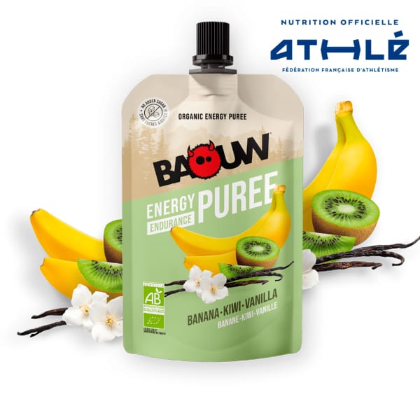 De ORGANIC BANANA-KIWI-VANILLA PUREE van Baouw is een energieke compote met nutritionele voordelen om al je sportieve inspanningen te ondersteunen! Deze heerlijke compote heeft energievoordelen isrijk aan koolhydraten, maar is ook een bron van en vitamine , voor perfectesynergie . Verrijkt met extra vierge olijfolie , onze compote levert ook essentiële vetten voor langdurige energie. Dit recept is bedacht door chef-kok Yoann Conte met twee Michelinsterren en voedingsdeskundige Benoit Nave en is de vrucht van hun expertise. Hij belichaamt de perfecte combinatie van smaakplezier en sportieve prestaties. Baouw energy compotes zijn een natuurlijk alternatief voor ultrabewerkte producten, zonder toegevoegde suikers en met een gematigde glycemische index voor een optimaal spijsverteringscomfort. Ze zijn ontworpen voor praktisch gebruik, zelfs als je hard aan het werk bent, en worden geleverd in hersluitbare flessen die gemakkelijk mee te nemen en vast te houden zijn.