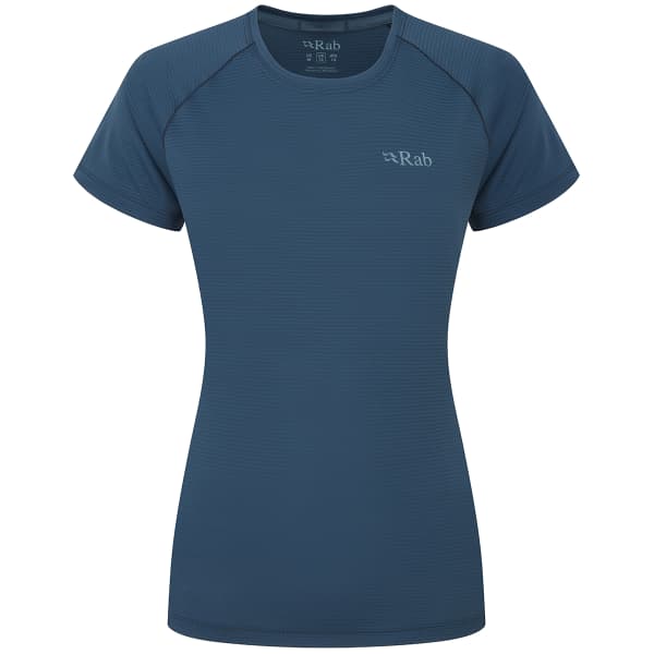 De SONIC TEE W van Rab is een lichtgewicht, technisch T-shirt voor dames.